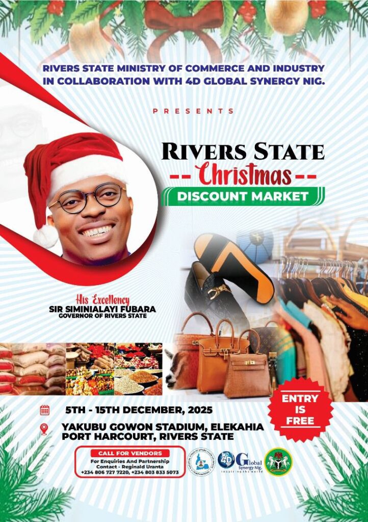 The Rivers State Christmas Discount Market is a festive initiative offering discounted food and essential items to help families access affordable goods during the holiday season. Running from 5th to 15th December 2025 at the Yakubu Gowon Stadium, the market provides an opportunity for residents and visitors to enjoy great deals while preparing for Christmas. […]